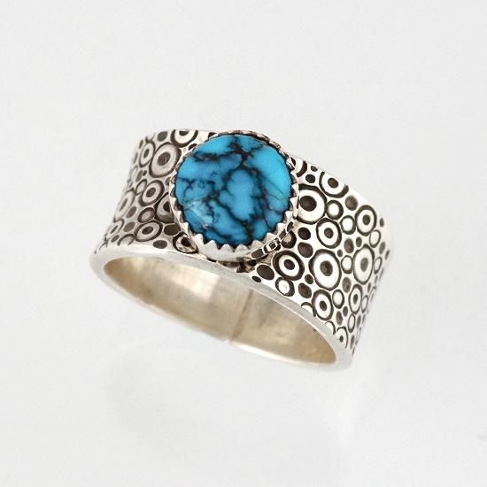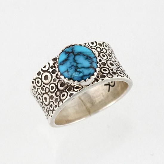 【21.5号】ナチュラルアパッチブルーターコイズ スタンプリング By Norbert Peshlakai